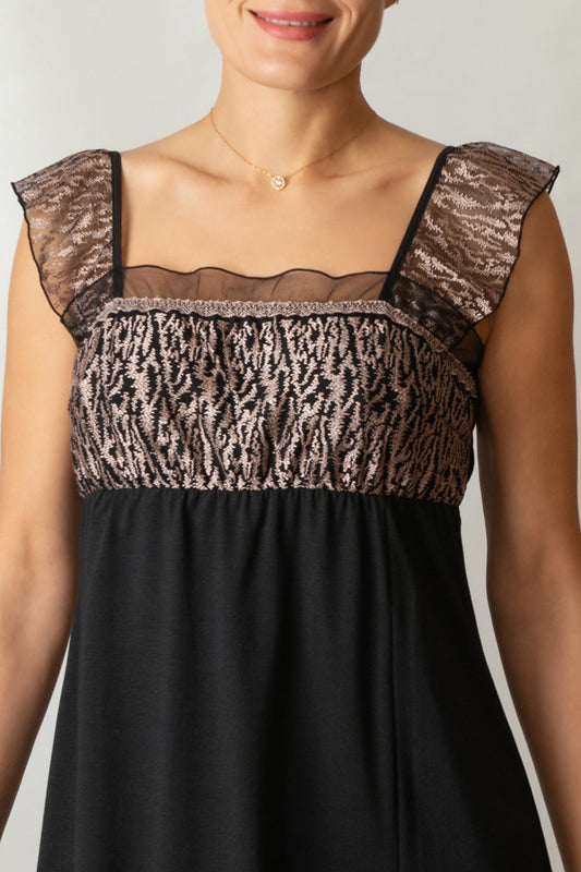 Cotton Comfort Nightdress - 3410 Black with lotus, 36-48