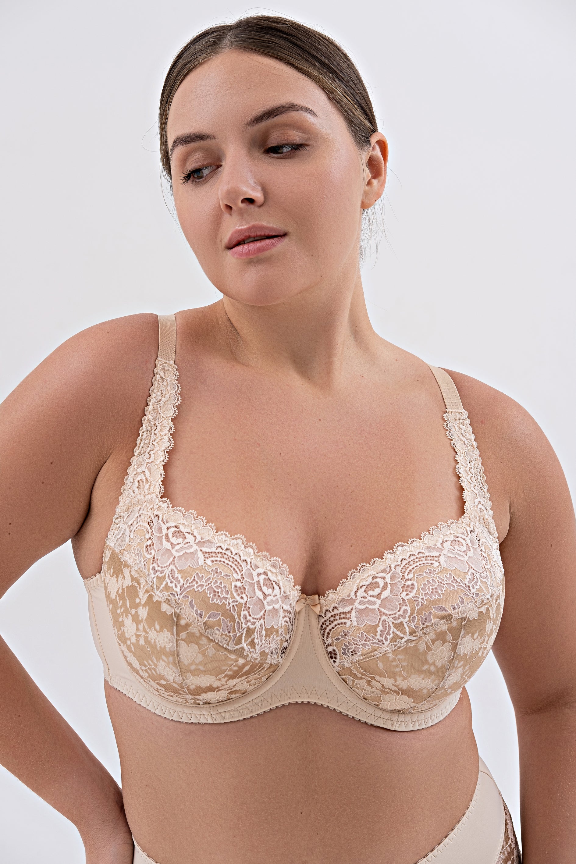 Elegants un atbalstošs krūšturis no smalka mikrofibras auduma un mežģīnēm ar ziedu rakstu, radīts, lai dāvātu komfortu un veidotu skaistu krūšu formu.