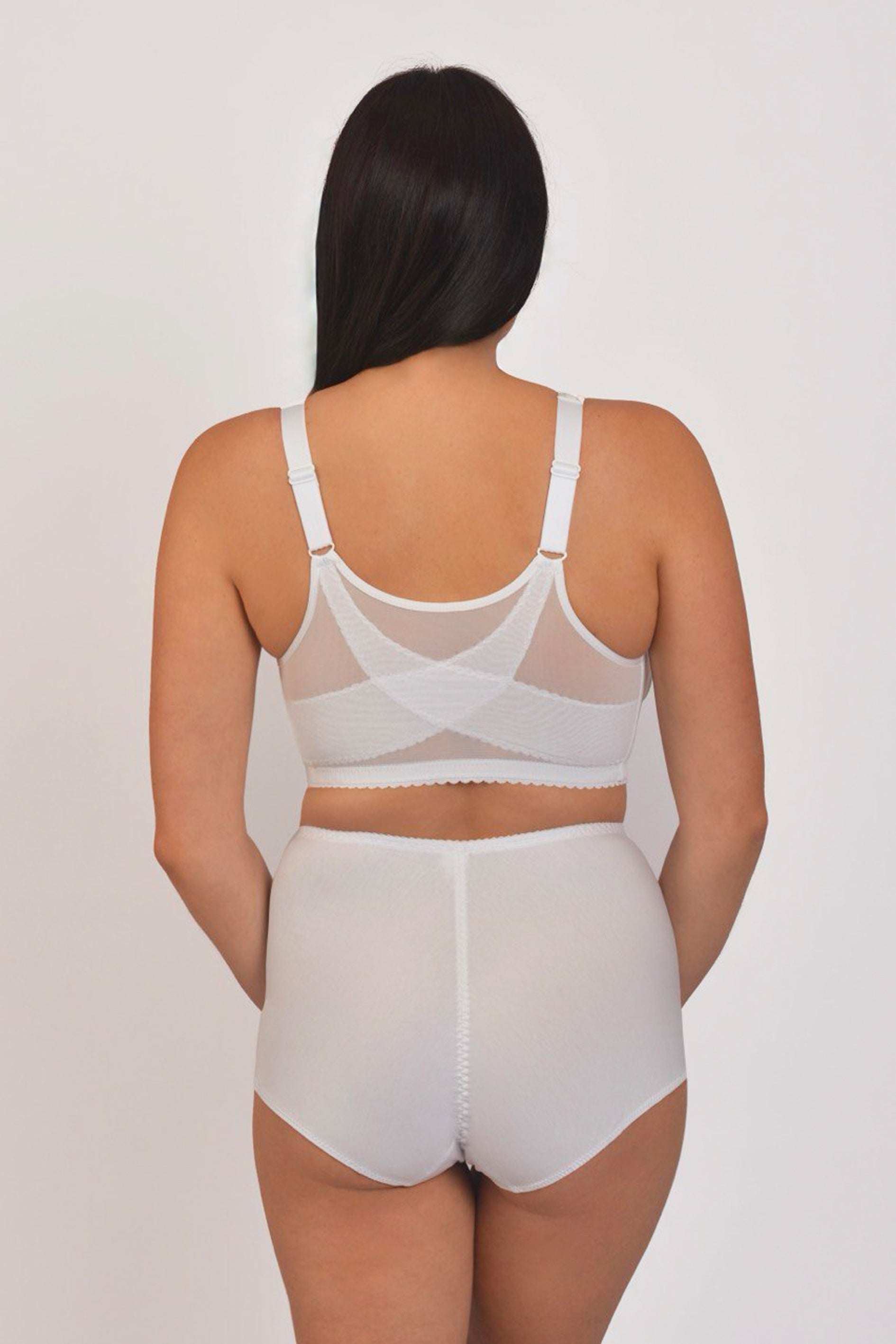 Krūšturis ar mīkstajiem kausiņiem un aizdari priekšā, kas vizuāli samazina krūšu izmēru, vienlaikus nodrošinot drošu krūšu izvietojumu un pievilcīgu formu. Īpašais dizains garantē lielisku formēšanu, atbalstu un komfortu visas dienas garumā, padarot to ideālu ikdienas valkāšanai. Priekšējā aizdare nodrošina vieglu uzvilkšanu un novilkšanu, īpaši piemērota lielu izmēru īpašniecēm.