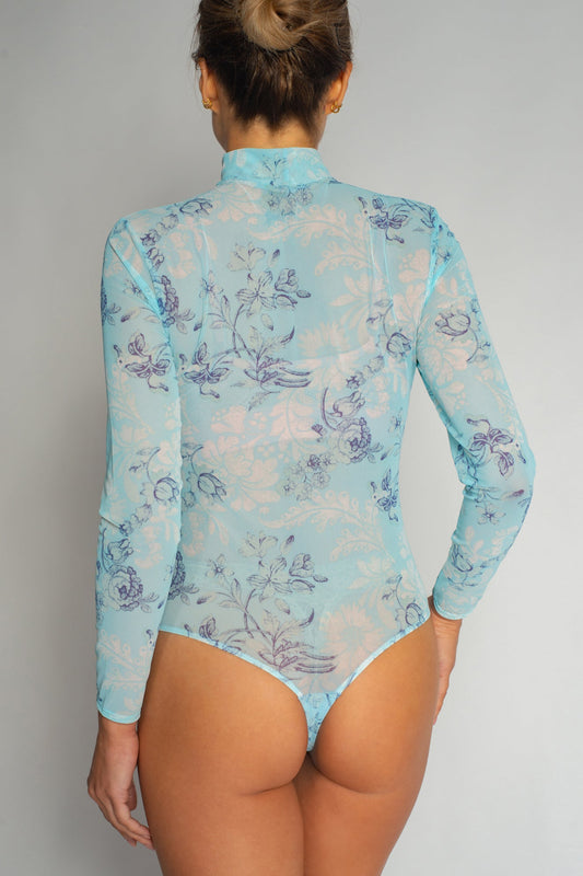 Боди с воротником-стойкой и длинными рукавами - 9123, Голубой, 38-46