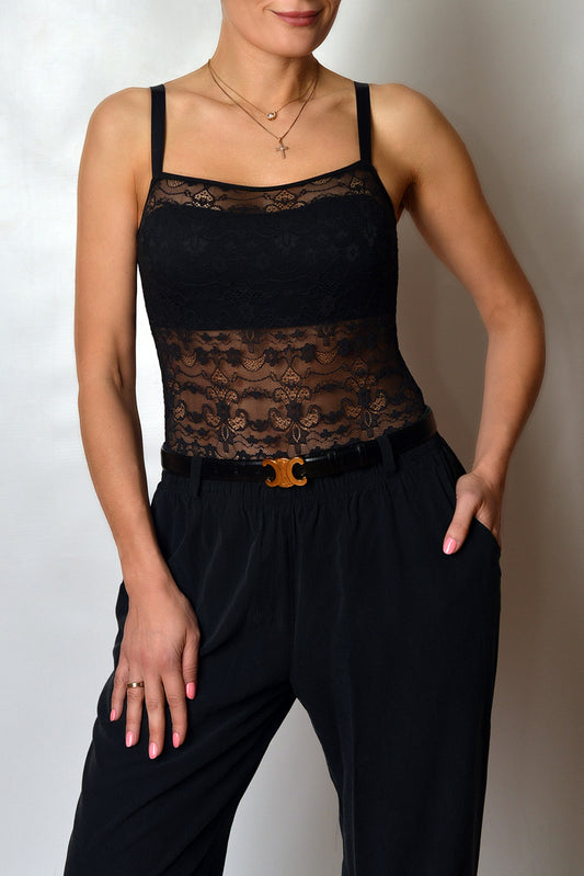 Кружевное боди на бретелях - 9126, Черный, 38-44
