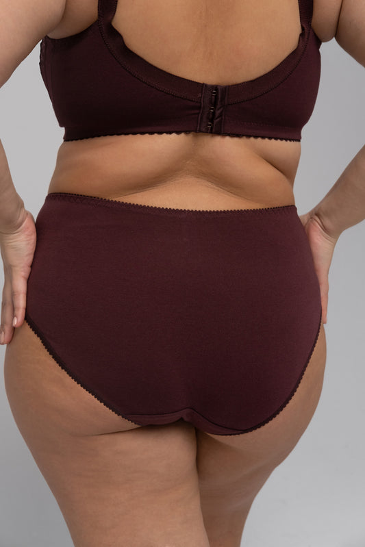 Комфортные базовые трусы-слипы со средней линией талии из натурального хлопка - 2955/C, Вино, 40-48