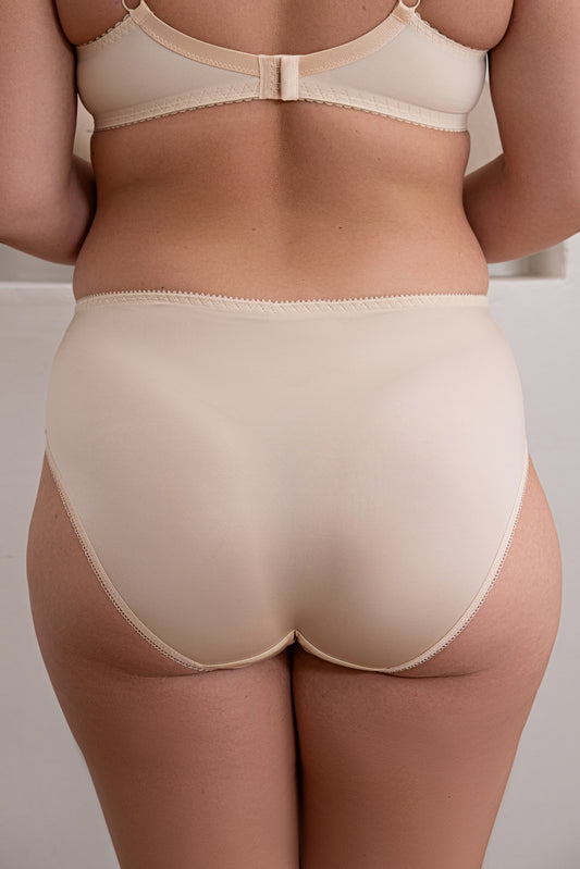 Комфортные трусы с высокой линией талии - 2937, Бежевые с темным кружевом, 40-52