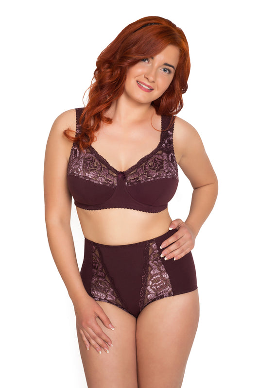 Комфортные трусы c высокой линией талии из натурального хлопка - 2922/C, Вино, 40-60
