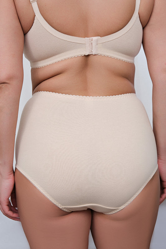 Комфортные трусы c высокой линией талии из натурального хлопка - 2922, Бежевые, 40-52
