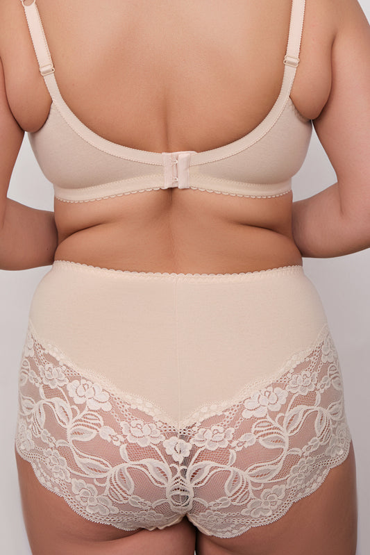 Комфортные трусы c высокой линией талии из натурального хлопка - 2914/A, Бежевый Ажур, 42-52