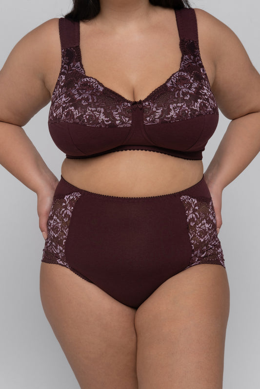 Комфортные трусы c высокой линией талии из натурального хлопка - 2918/C, Вино, 42-60