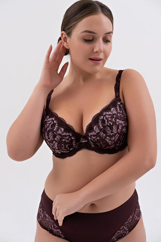 Кружевной бюстгальтер push-up с поролоновой чашкой на косточках - 1134, Вино, 75-90 A-E