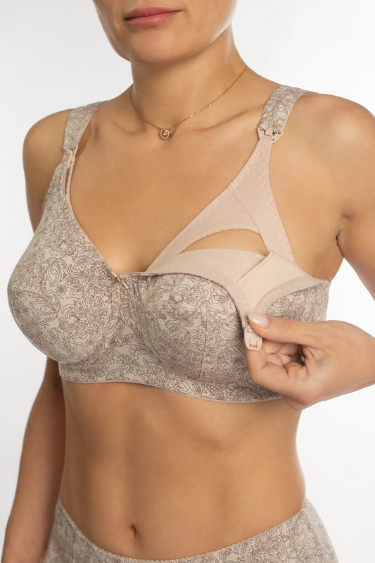 Комфортный бюстгальтер из натурального хлопка с мягкой чашкой без косточек для кормящих матерей - 1131/G Гусиные лапки, 80-110 C-J