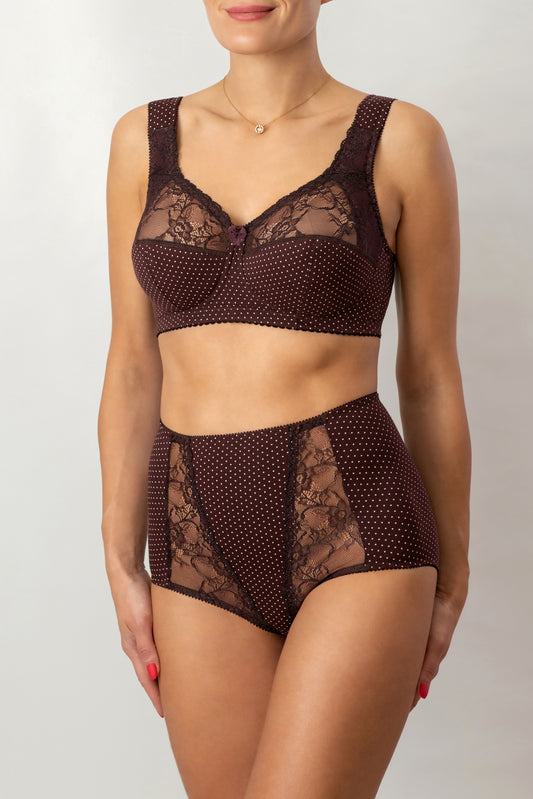 Комфортный бюстгальтер из натурального хлопка с мягкой чашкой без косточек - 1101/C, Вино в крапинку, 75-105 B-G