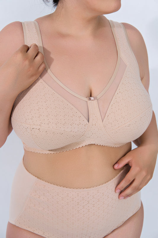 Комфортный бюстгальтер минимайзер из натурального хлопка с мягкой чашкой без косточек - 1145/A, Бежевый Ажур, 80-105 B-I
