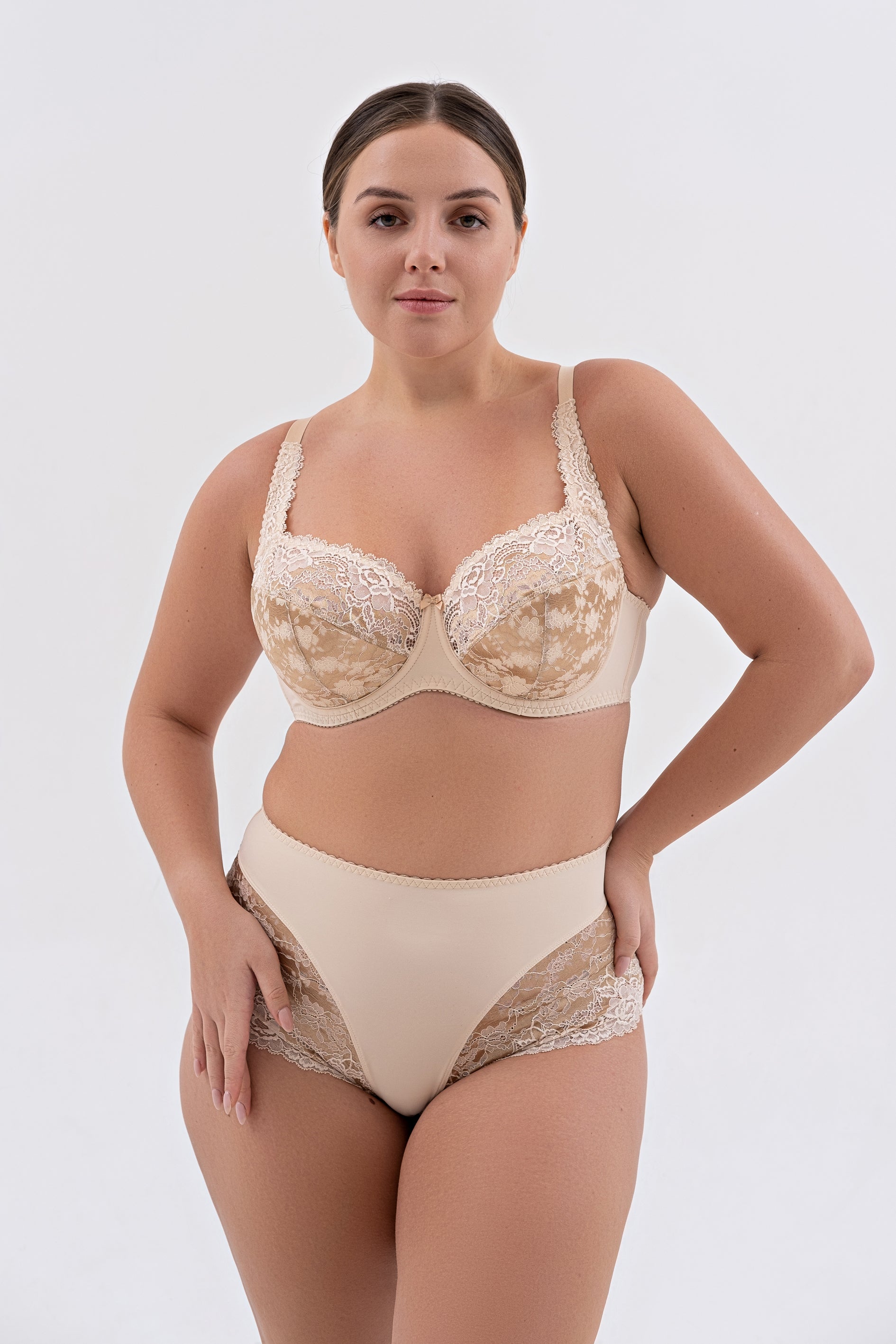 Комфортные трусы с высокой линией талии - 2937, Бежевые с темным кружевом, 40-52