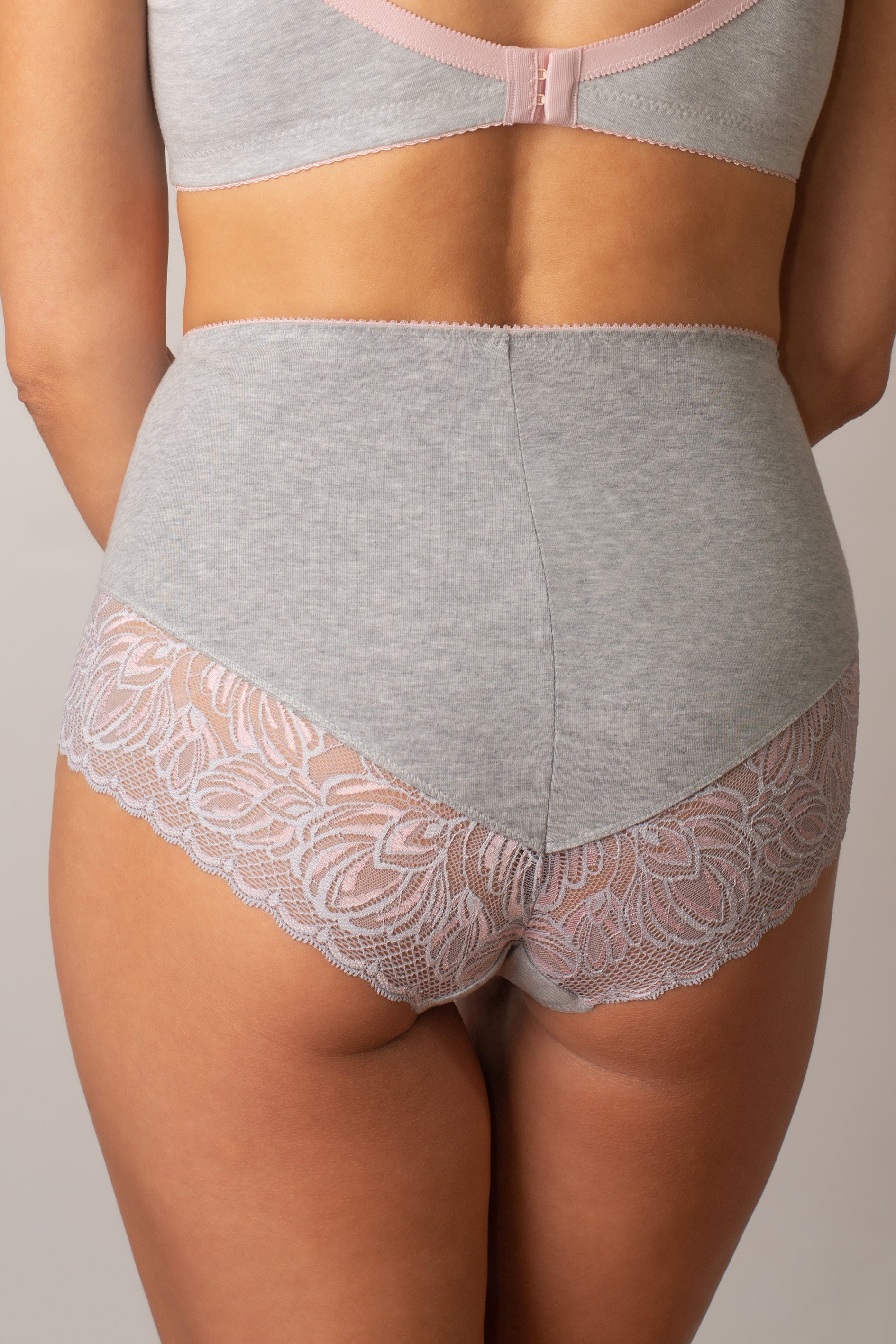 Комфортные трусы с высокой линией талии из натурального хлопка - 2911/E, Серые с лотосом, 40-52